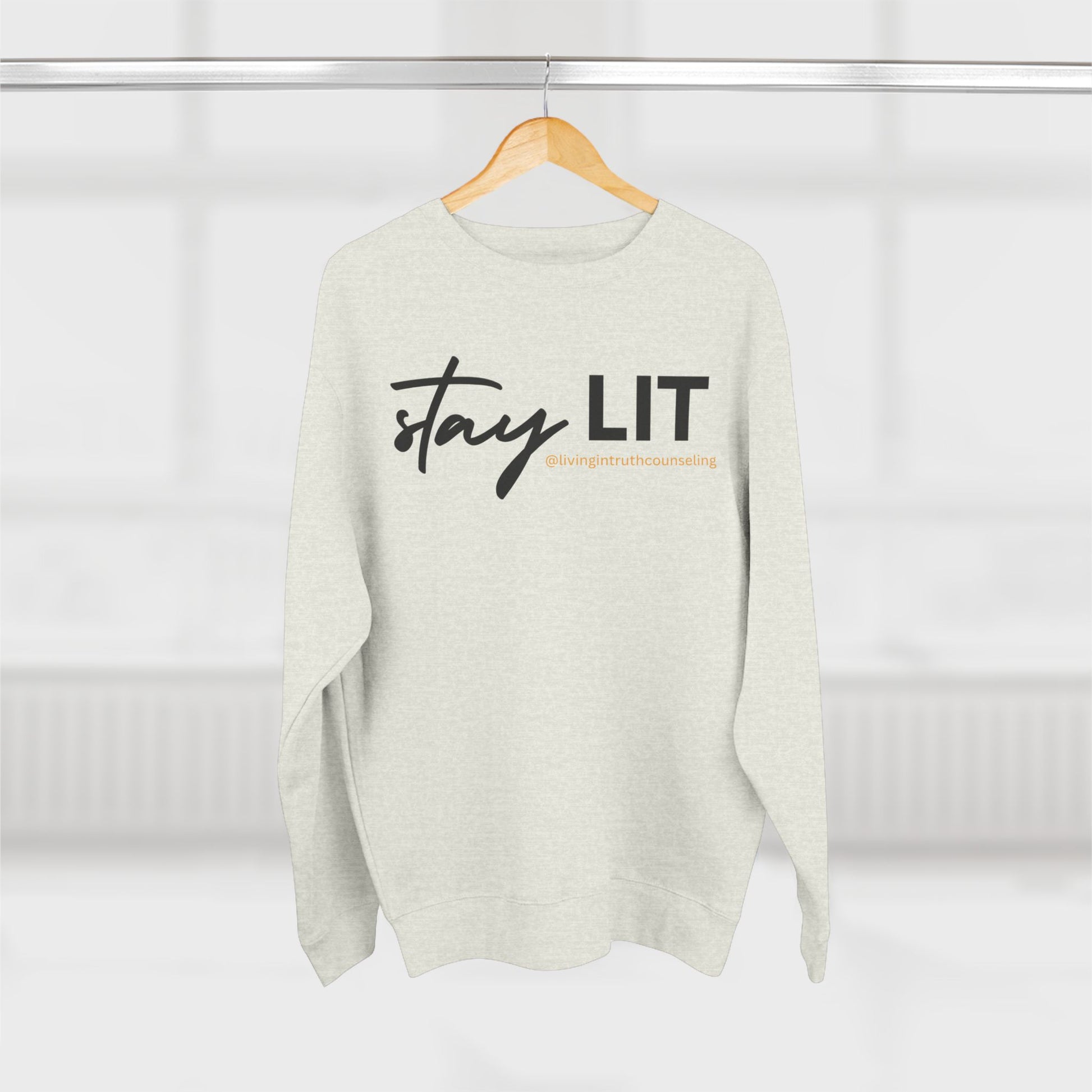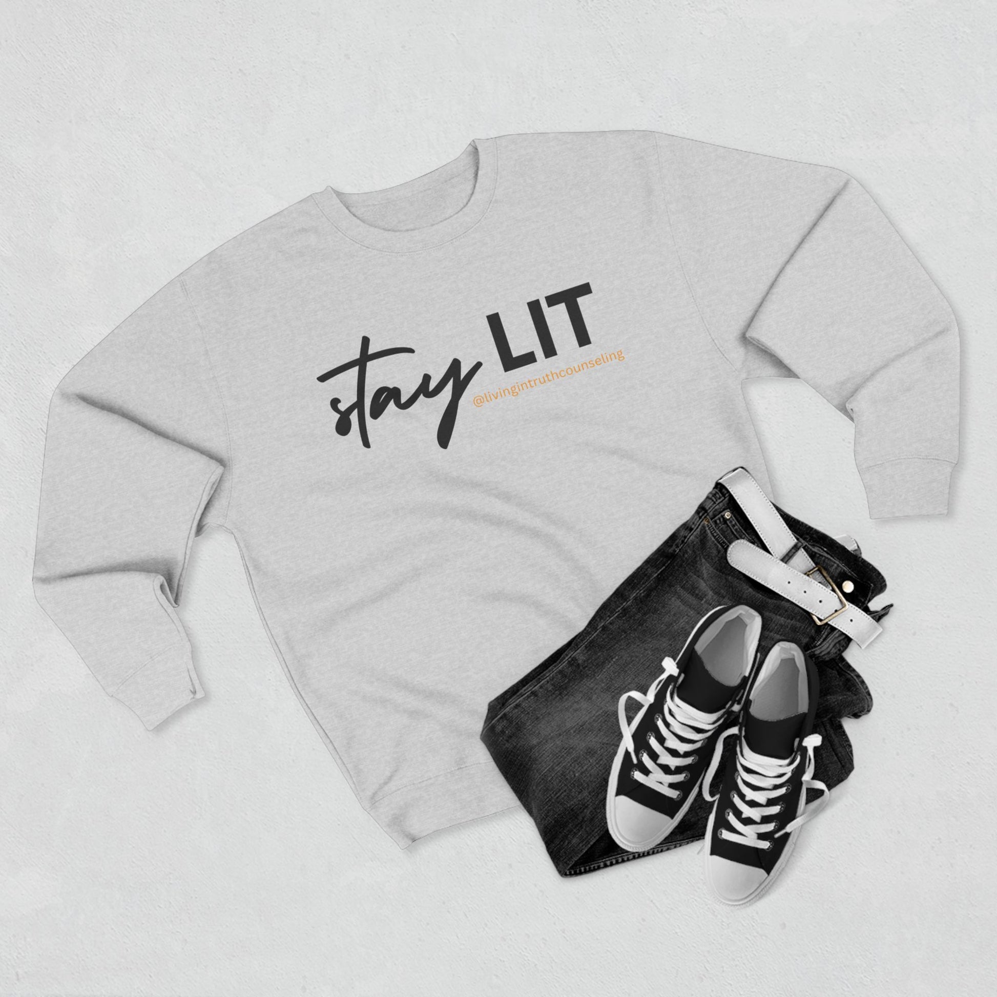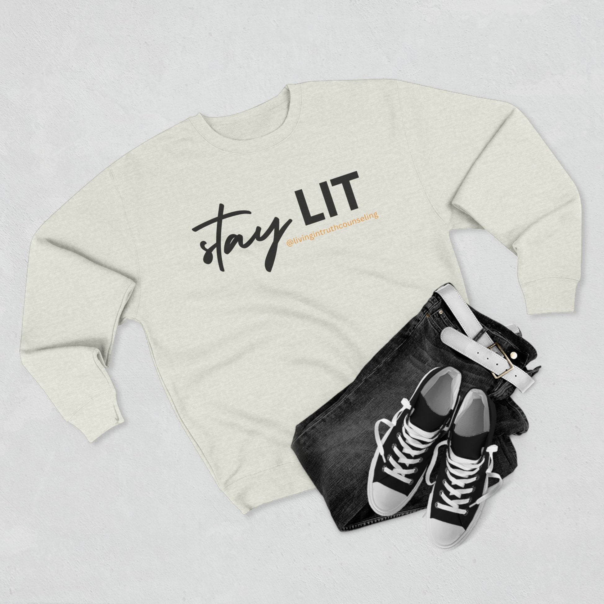 Stay warm and stand out with the Stay LIT Crew Neck Sweatshirt, our original design from the LIT collection. Made with premium 3-end fleece for durability and a soft touch, it’s perfect for layering or lounging. This cozy staple keeps you comfortable, stylish, and always LIT. Available in the following colorways: heather grey, oatmeal grey, black and navy.