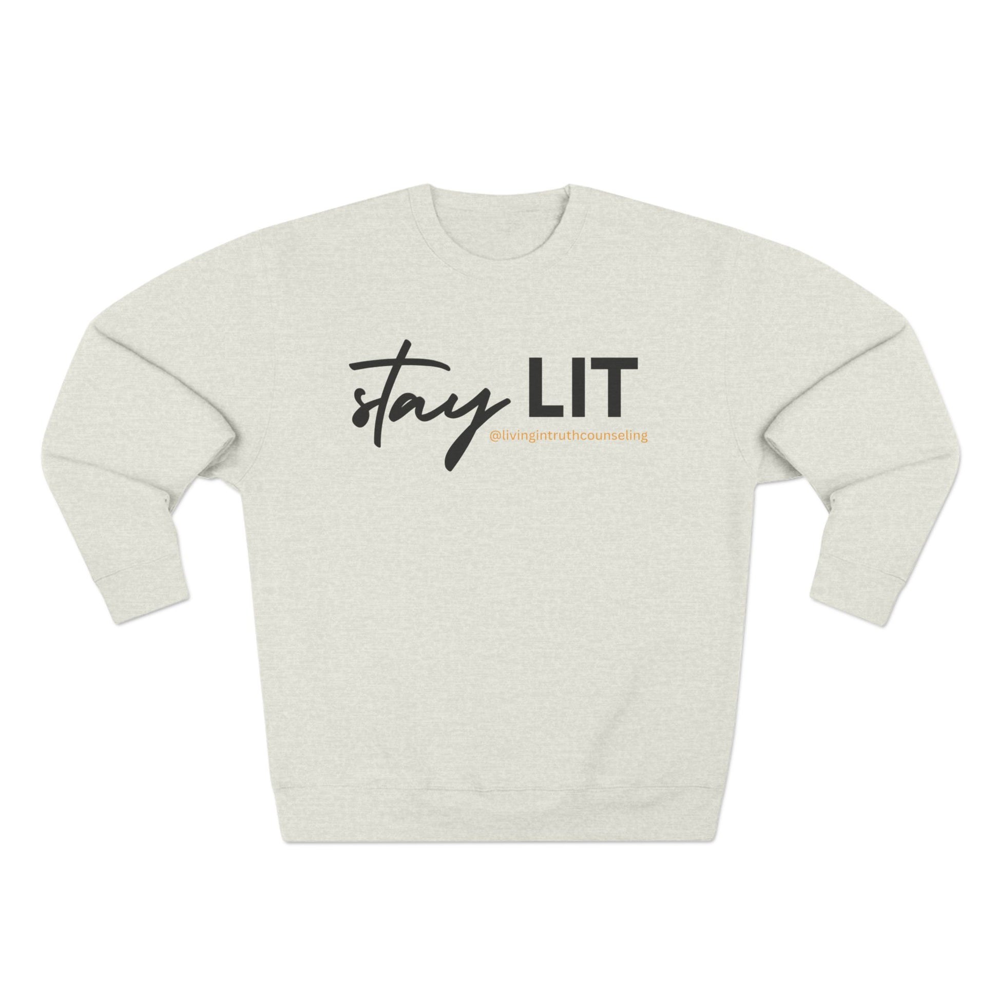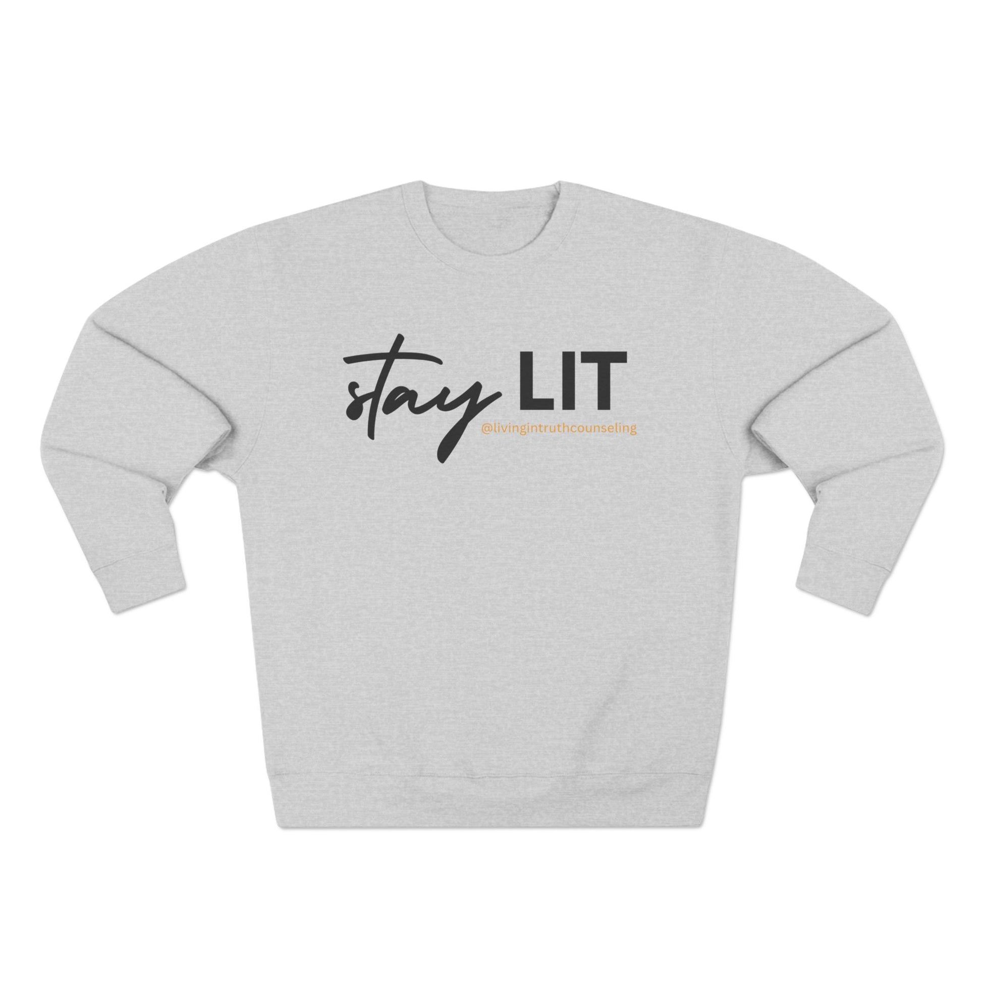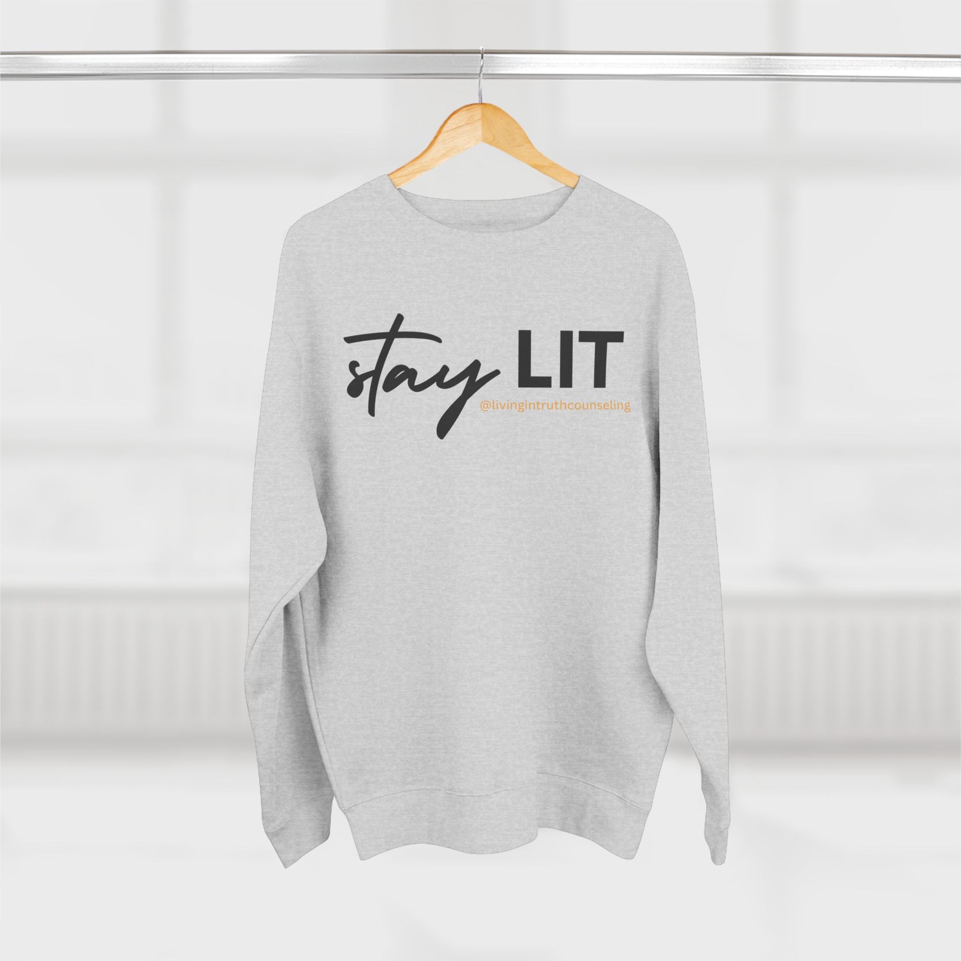 Stay warm and stand out with the Stay LIT Crew Neck Sweatshirt, our original design from the LIT collection. Made with premium 3-end fleece for durability and a soft touch, it’s perfect for layering or lounging. This cozy staple keeps you comfortable, stylish, and always LIT. Available in the following colorways: heather grey, oatmeal grey, black and navy.